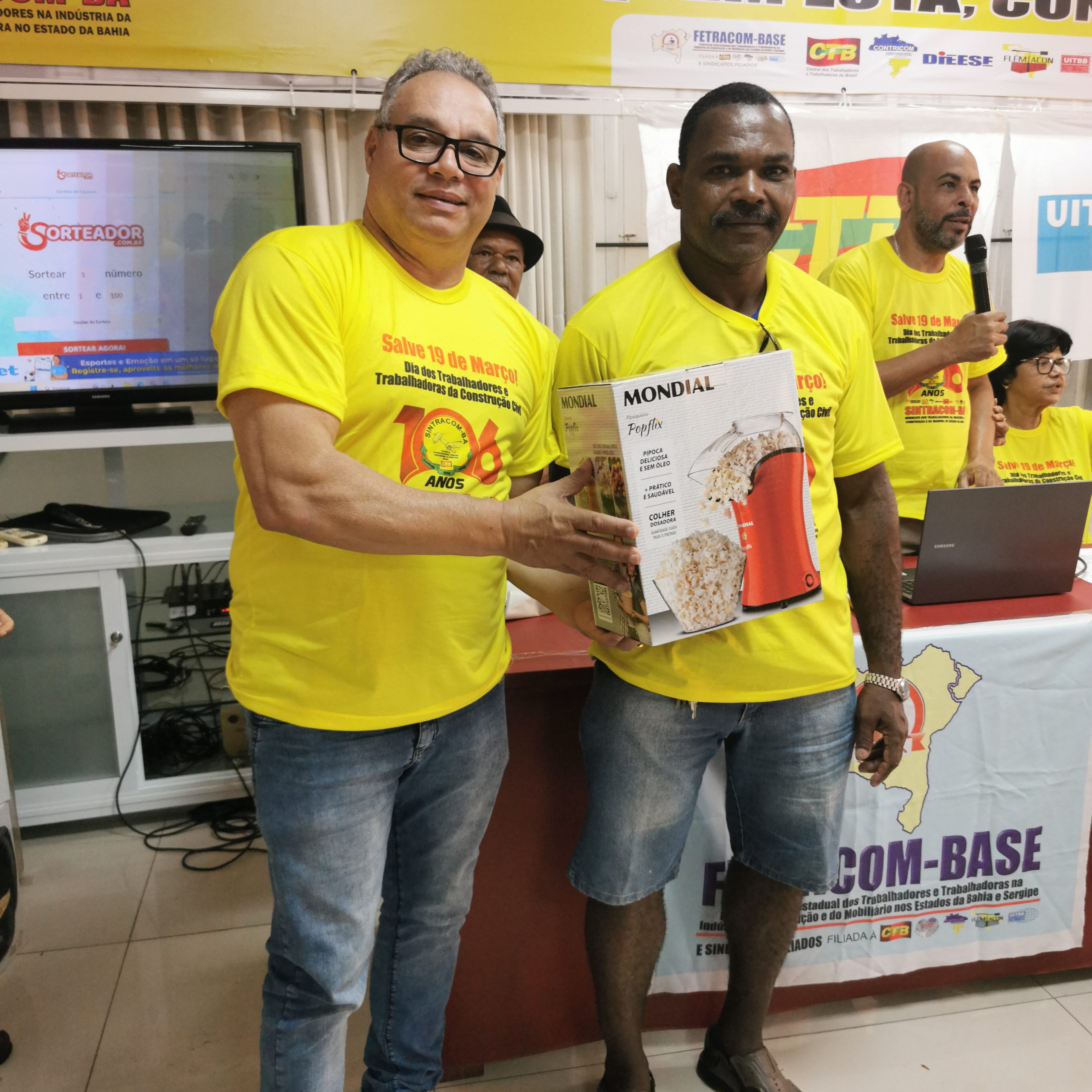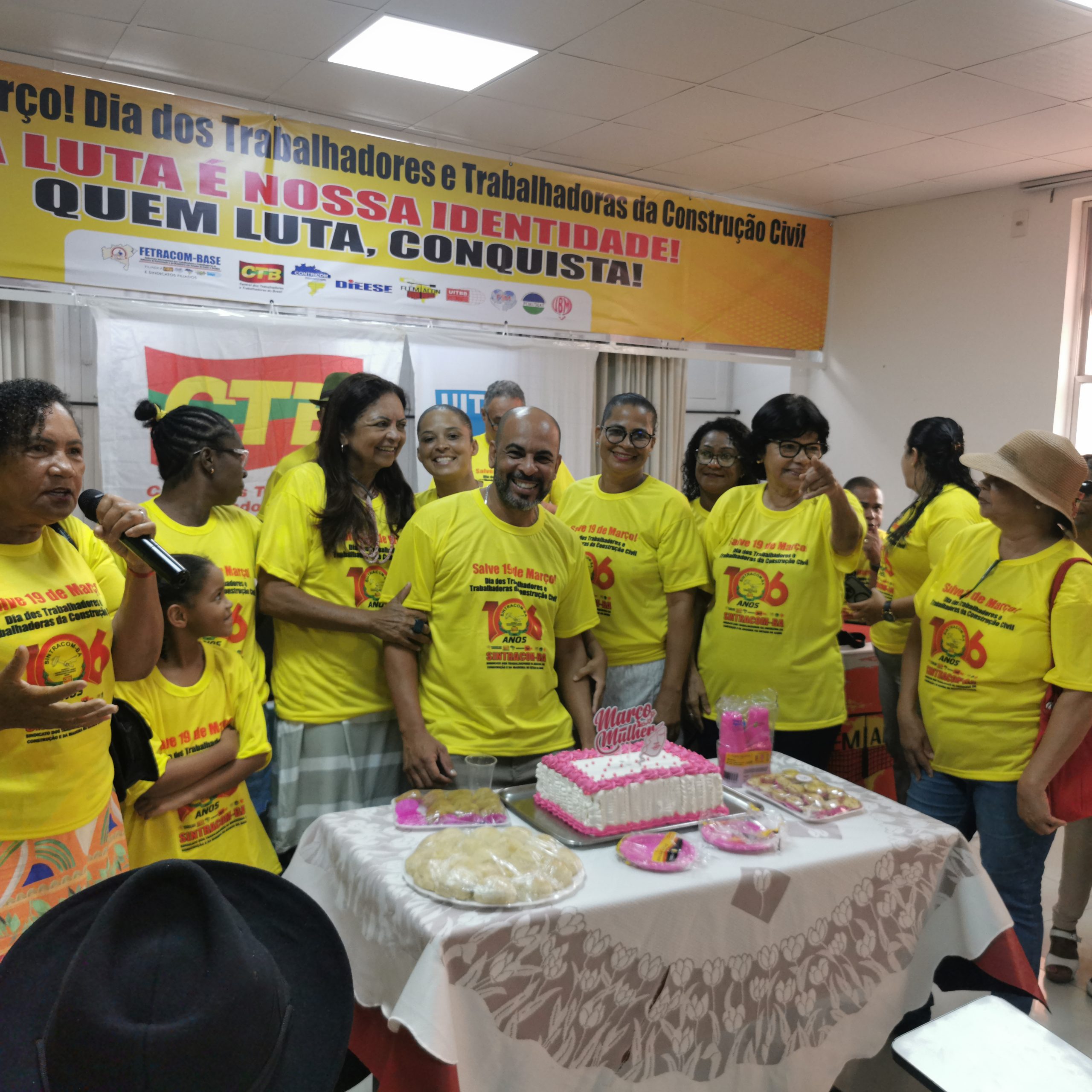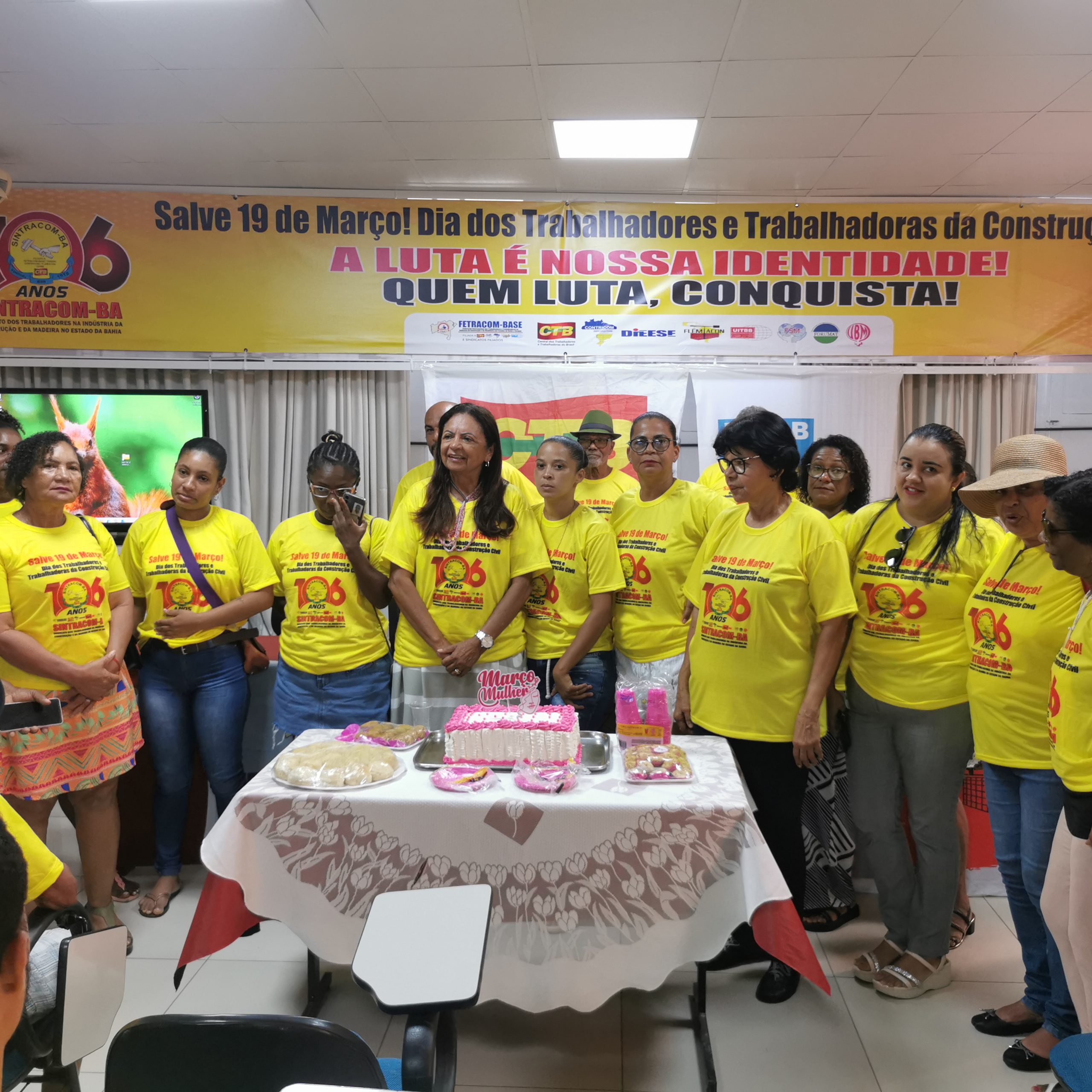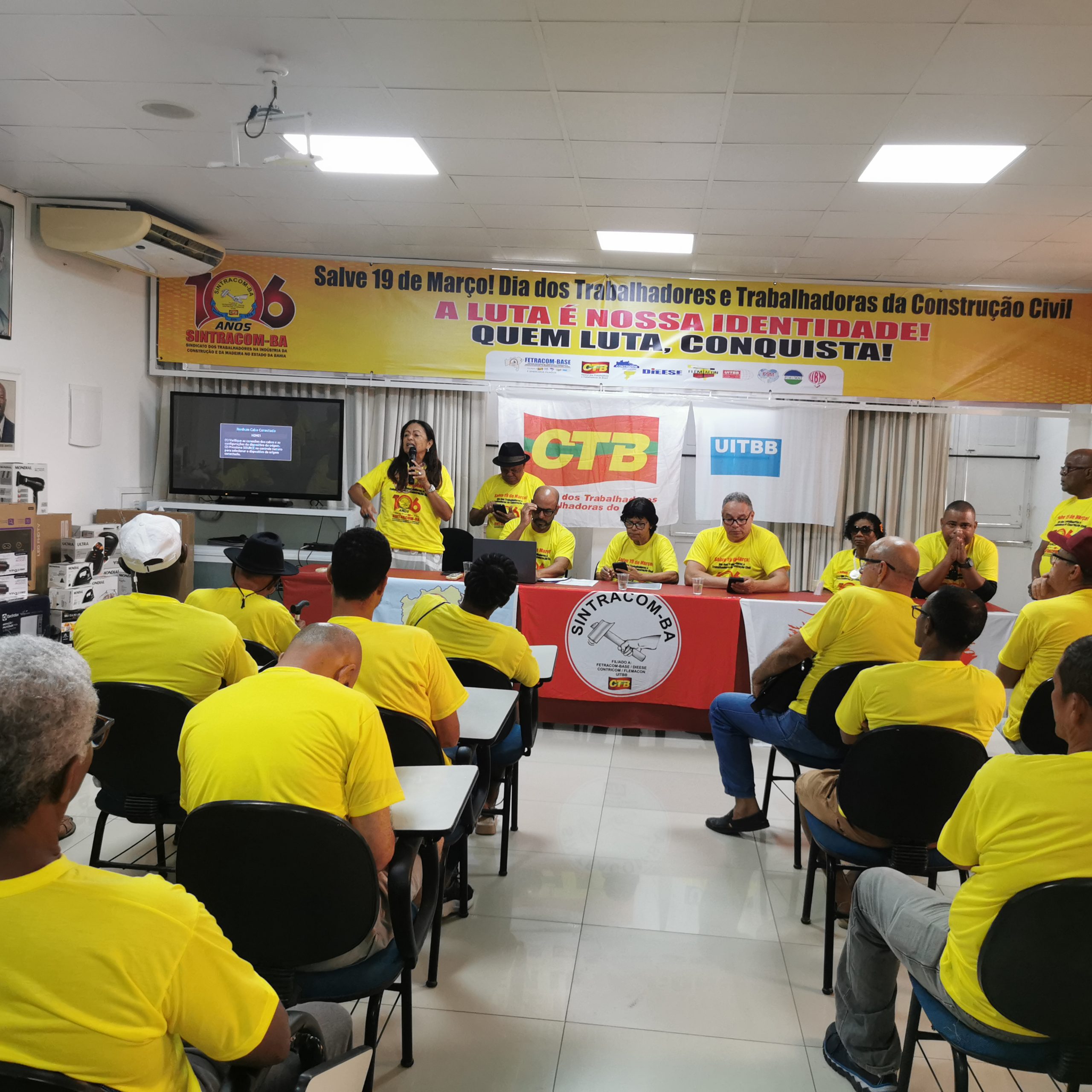 Nesta data histórica, 19 de Março, que marca os 106 anos do primeiro Sindicato fundado no Brasil, em 1919, o SINTRACOM-BA comemorou também o Dia dos Trabalhadores e Trabalhadoras da Construção Civil da Bahia, reunindo em sua sede, na manhã de hoje, trabalhadores (as), diretores (as) e convidados (as), numa bonita festa com o auditório lotado.