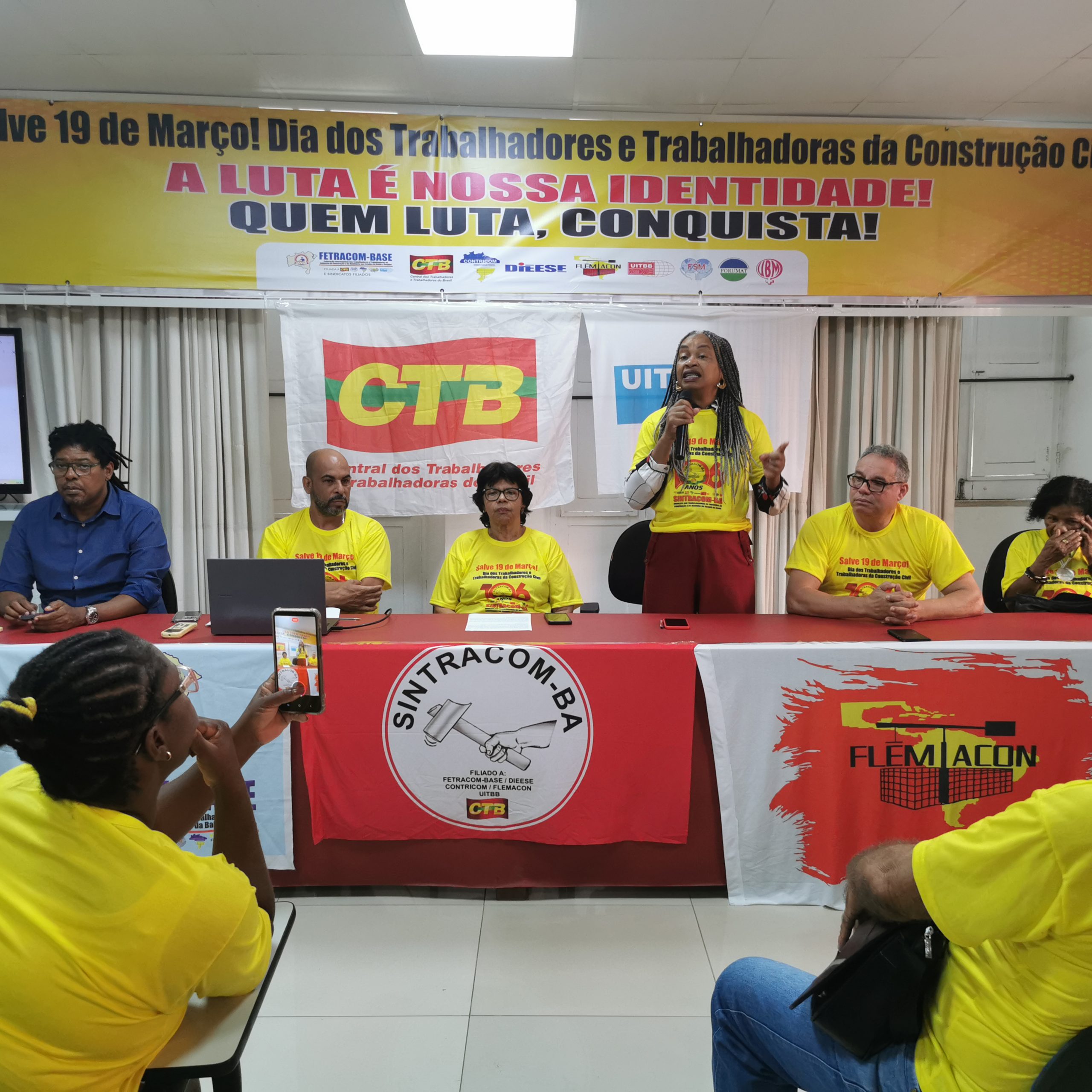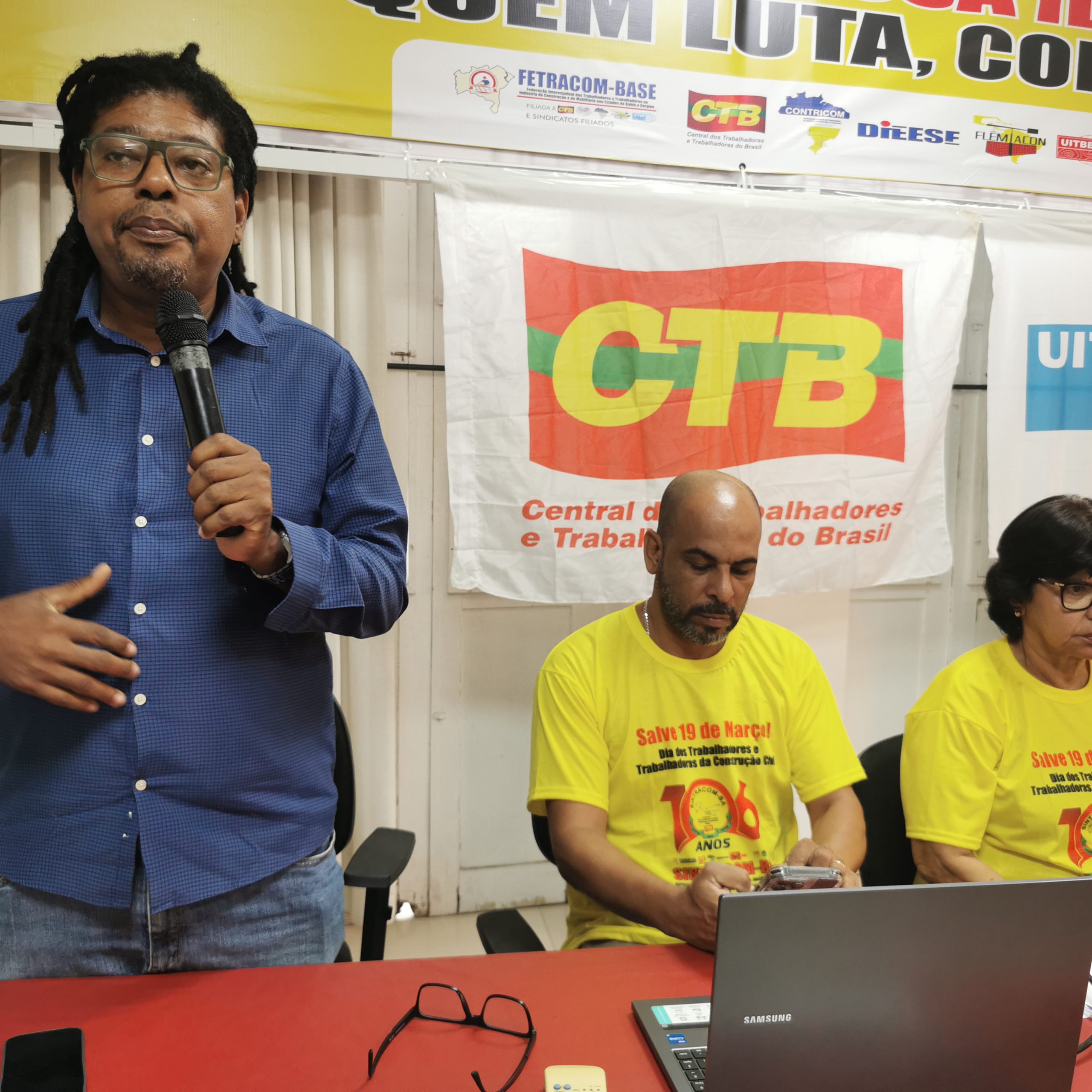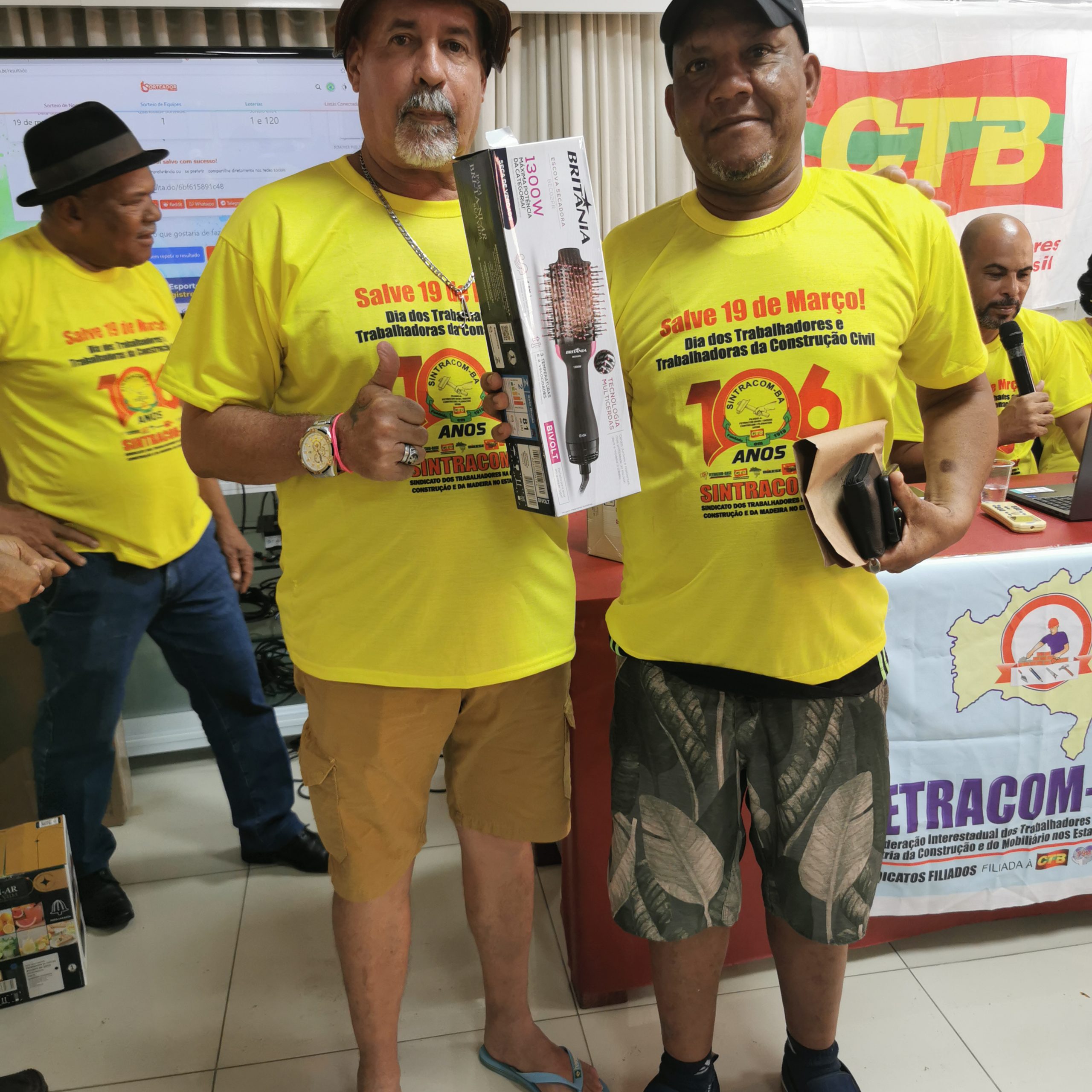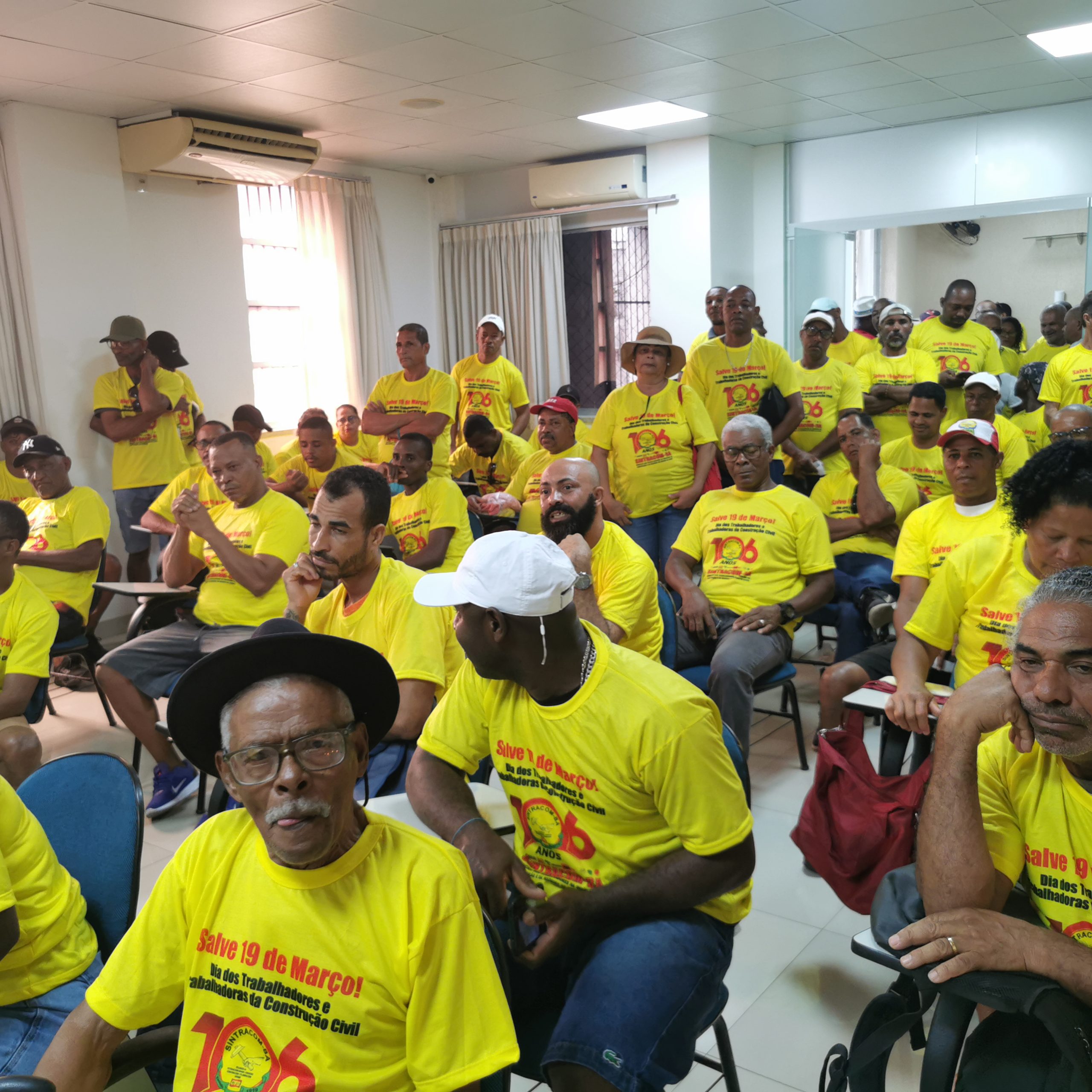 Nesta data histórica, 19 de Março, que marca os 106 anos do primeiro Sindicato fundado no Brasil, em 1919, o SINTRACOM-BA comemorou também o Dia dos Trabalhadores e Trabalhadoras da Construção Civil da Bahia, reunindo em sua sede, na manhã de hoje, trabalhadores (as), diretores (as) e convidados (as), numa bonita festa com o auditório lotado.