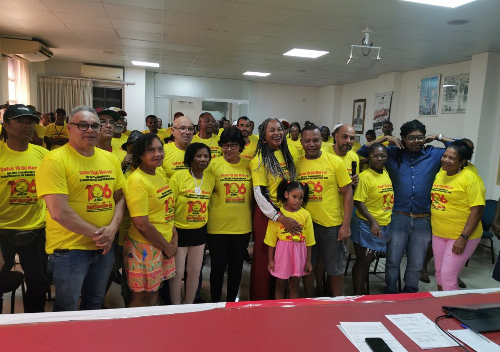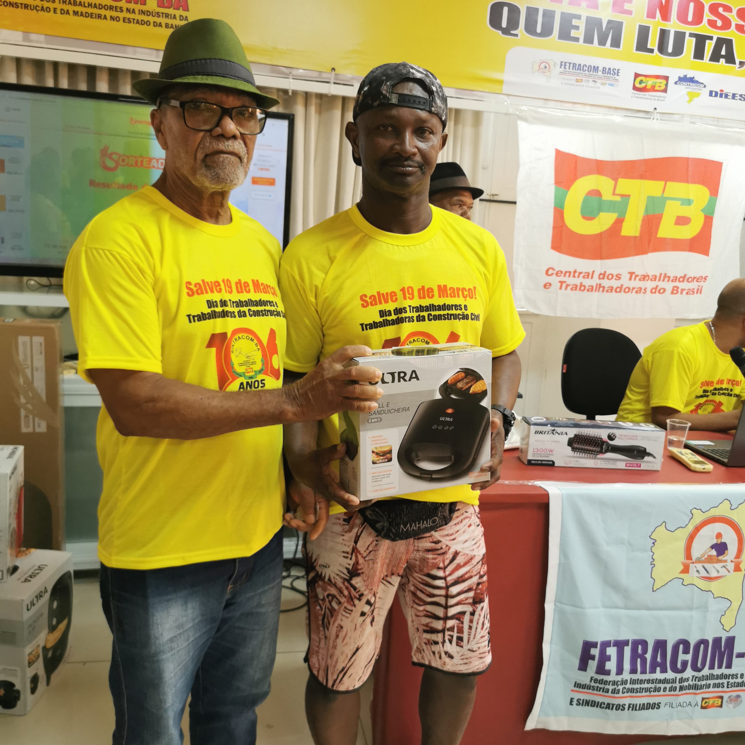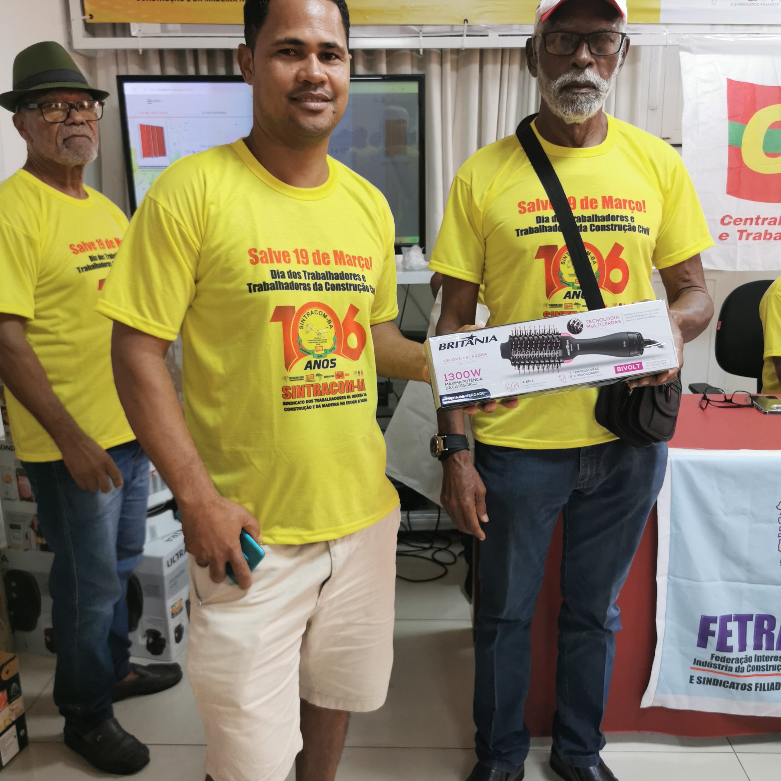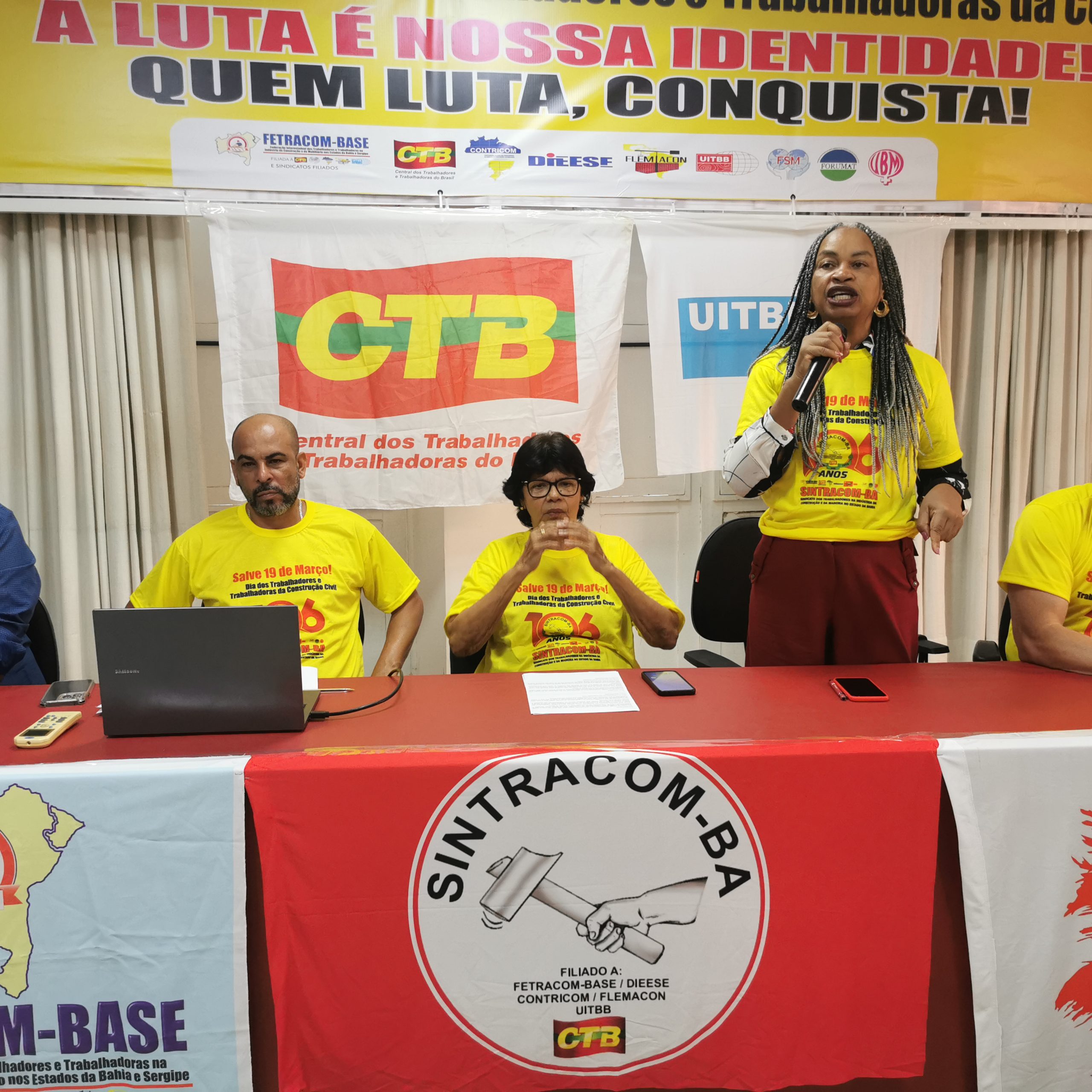 Nesta data histórica, 19 de Março, que marca os 106 anos do primeiro Sindicato fundado no Brasil, em 1919, o SINTRACOM-BA comemorou também o Dia dos Trabalhadores e Trabalhadoras da Construção Civil da Bahia, reunindo em sua sede, na manhã de hoje, trabalhadores (as), diretores (as) e convidados (as), numa bonita festa com o auditório lotado.