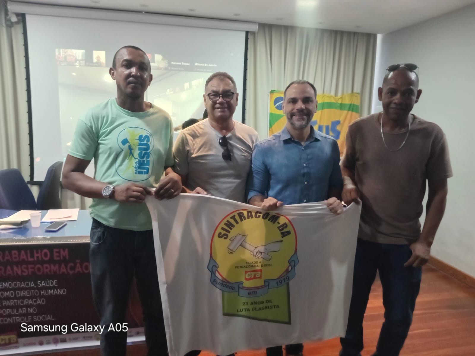 Dia 28/04 teve atividade da CTB Bahia, do Abril Verde sobre Ações Coletivas de saúde e segurança no trabalho, no auditório do Sindicato dos Bancários da Bahia, com a participação do secretário Estadual do Trabalho, Emprego, Renda e Esportes, Augusto Vasconcelos, diretores do SINTRACOM-BA, FETRACOM-BASE, FLEMACON e de diversas entidades sindicais. Veja as fotos: