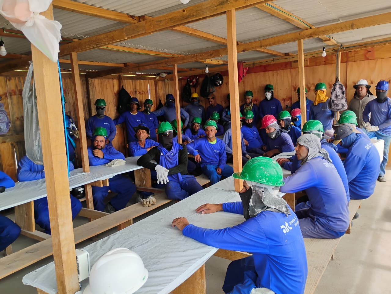 Identificaram várias irregularidades: a empresa não fornecia almoço, não tinha feito a instalação da CIPA, o refeitório é incompatível com a quantidade de trabalhadores, assim como o banheiro e o vestiário.