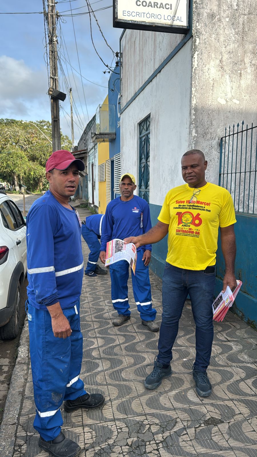 Conversaram com os trabalhadores e trabalhadoras, e fizeram a distribuição dos jornais do SINTRACOM-BA com informações atualizadas sobre as lutas da categoria.