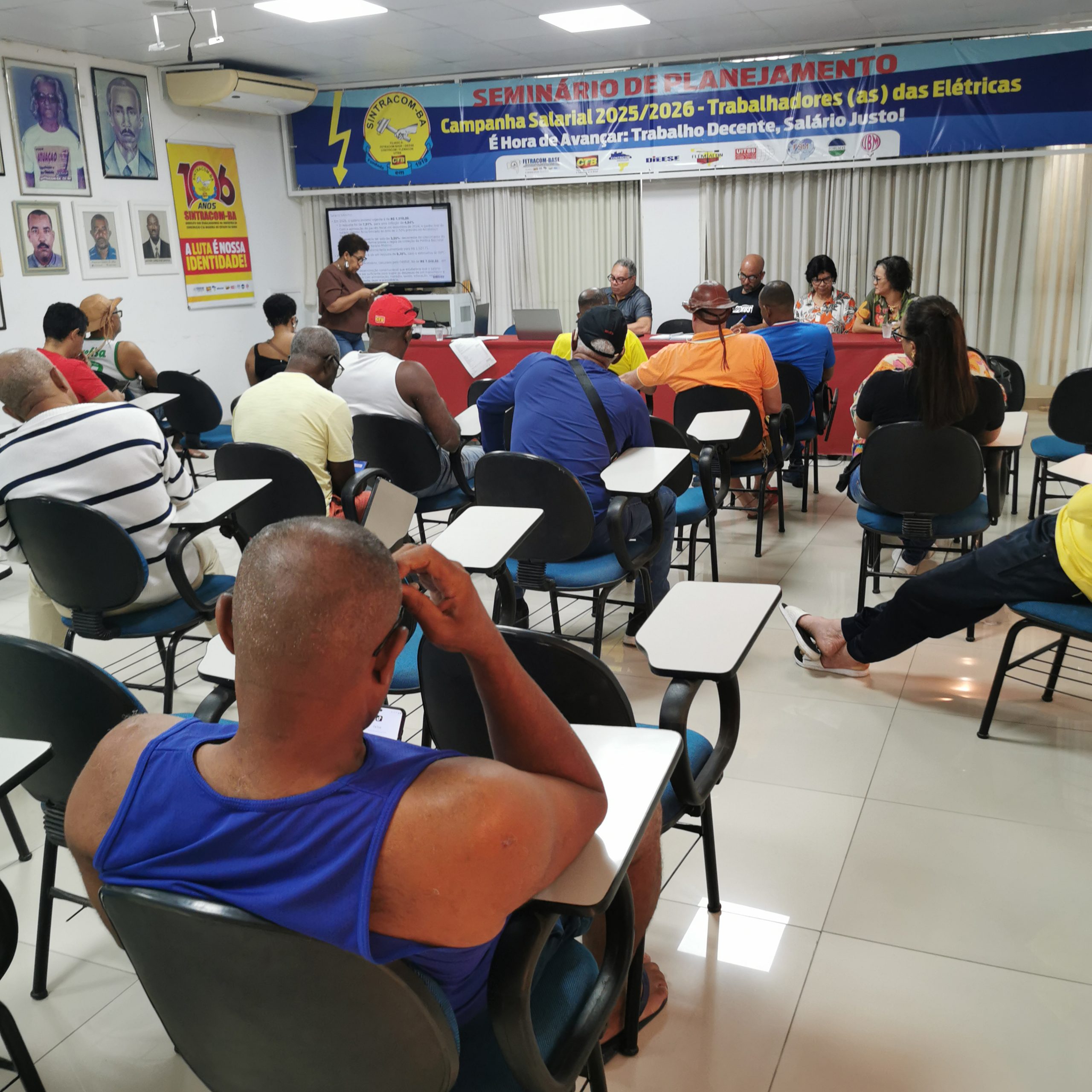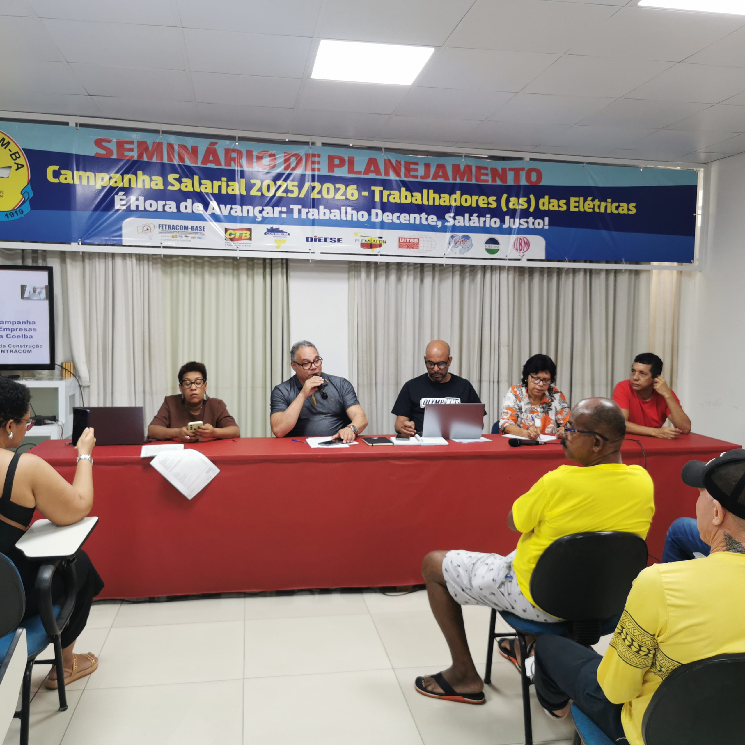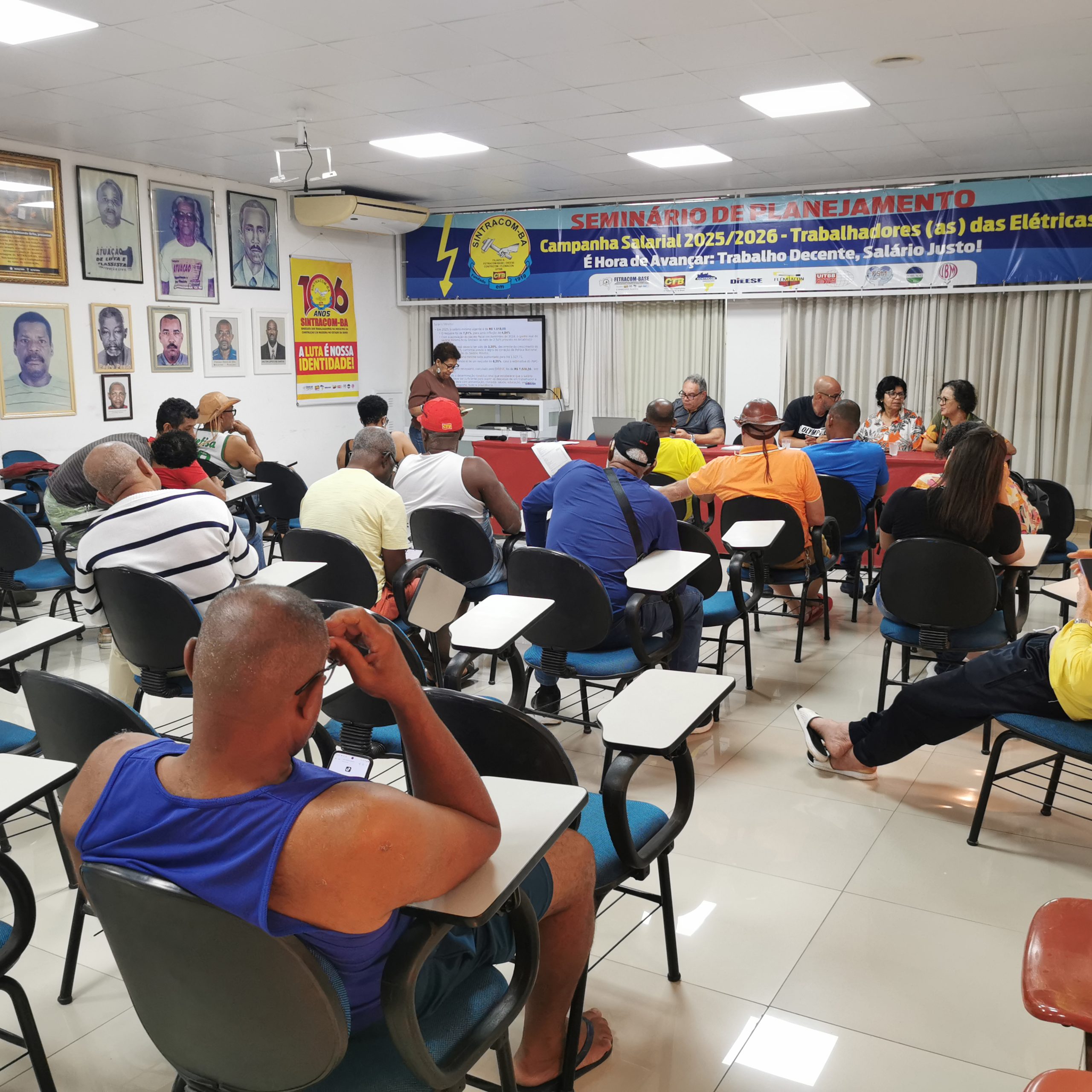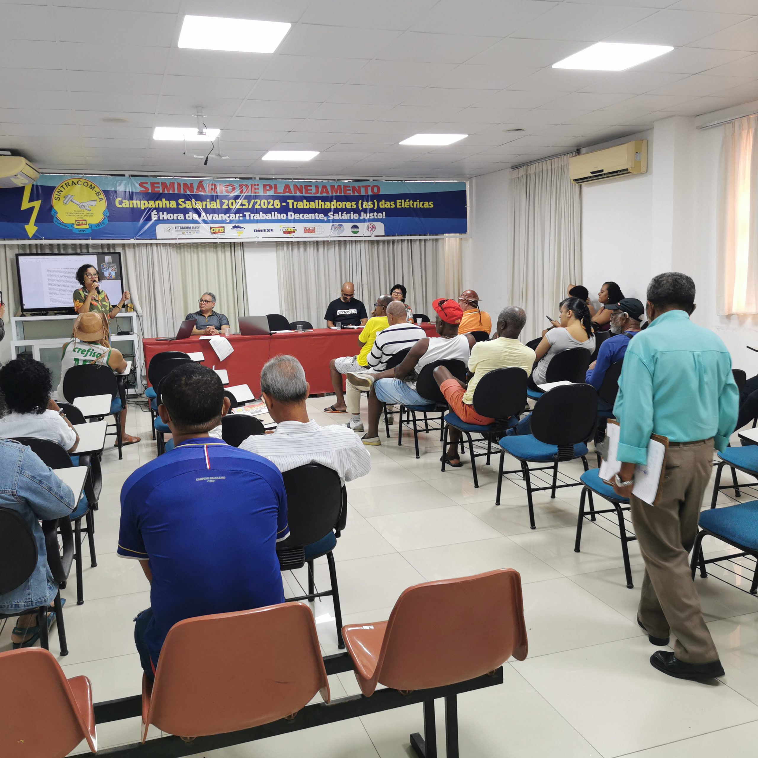 Na manhã deste sábado (19/07), o SINTRACOM-BA e a FETRACOM-BASE reuniram trabalhadores e trabalhadoras na sede do Sindicato, e realizaram o Seminário de Planejamento das Elétricas, para dar início à Campanha Salarial 2025 / 2027 da categoria. Foram apresentadas propostas e aprovada por unanimidade a pauta de reivindicações.