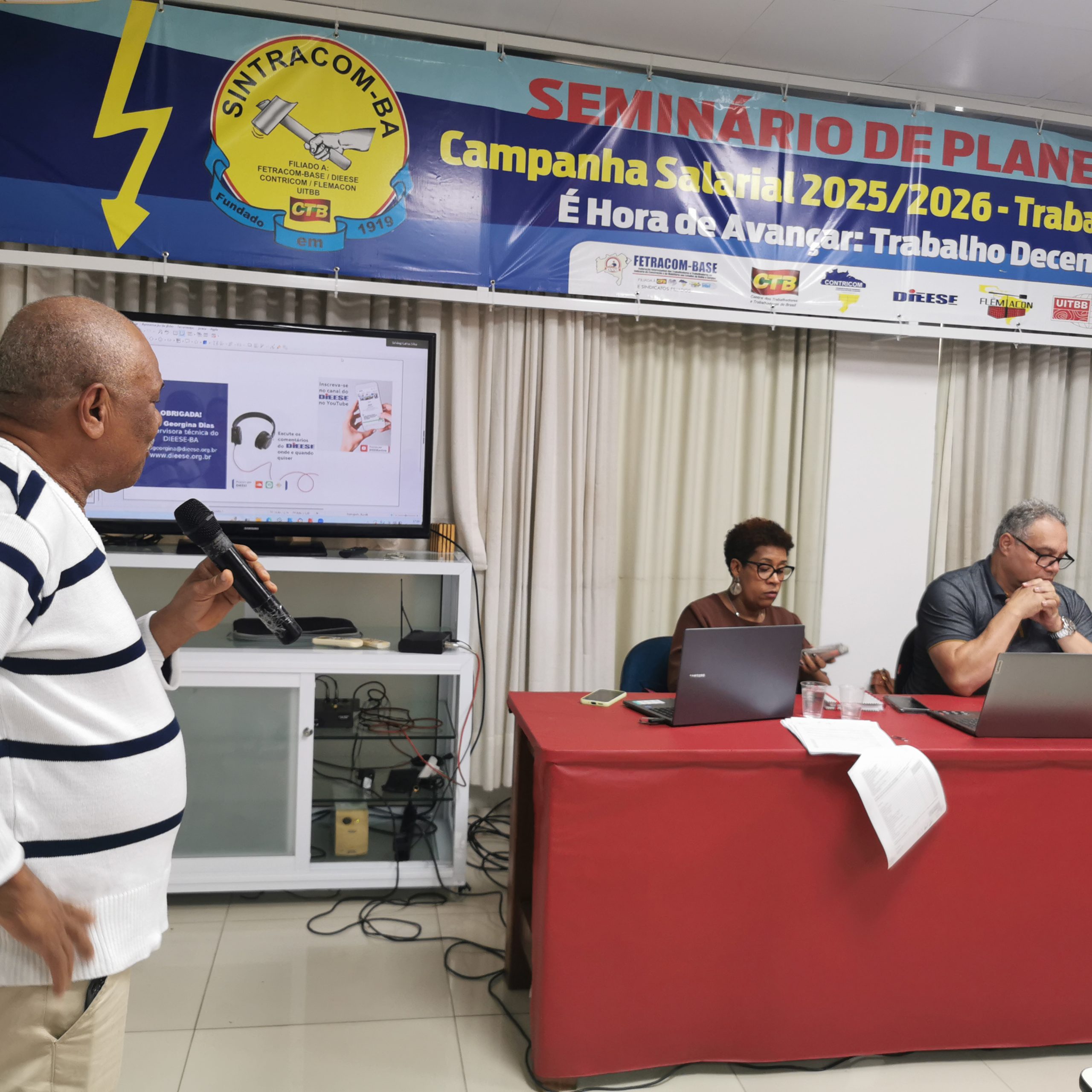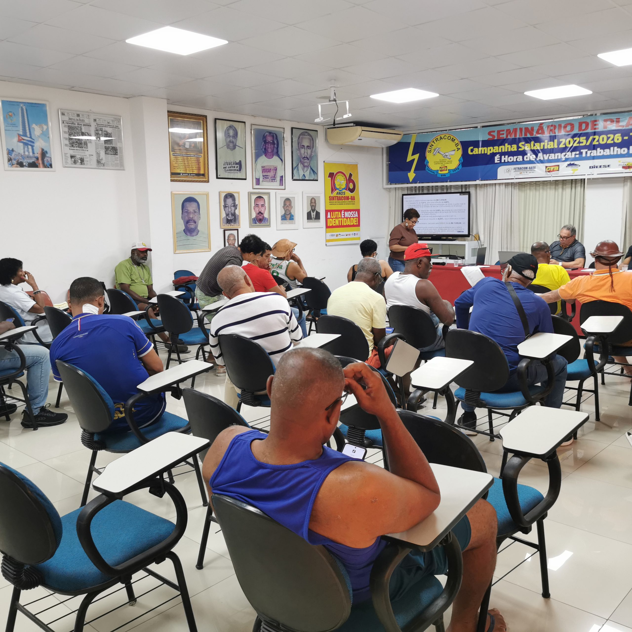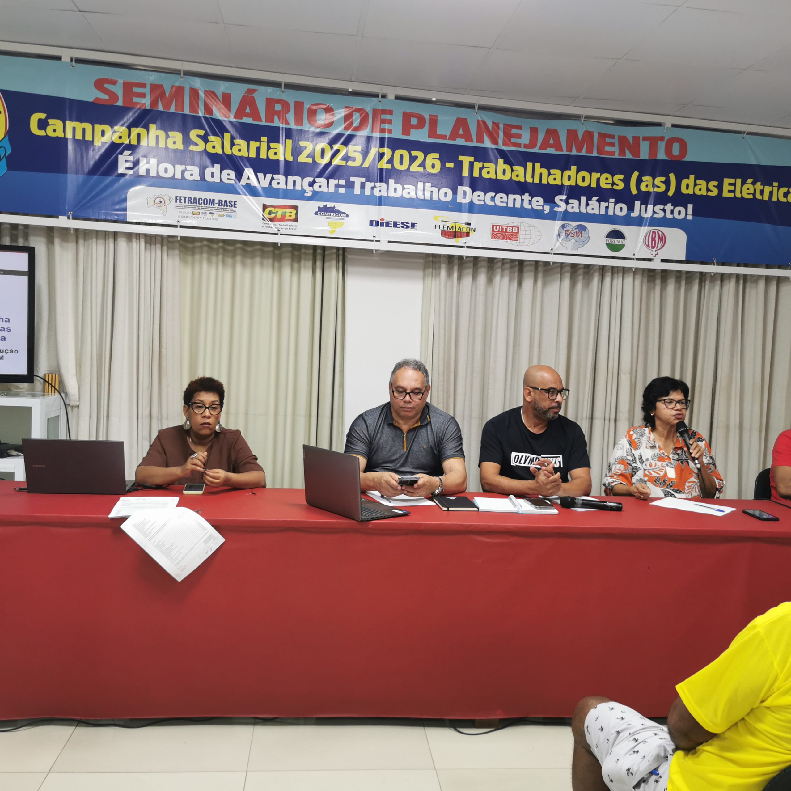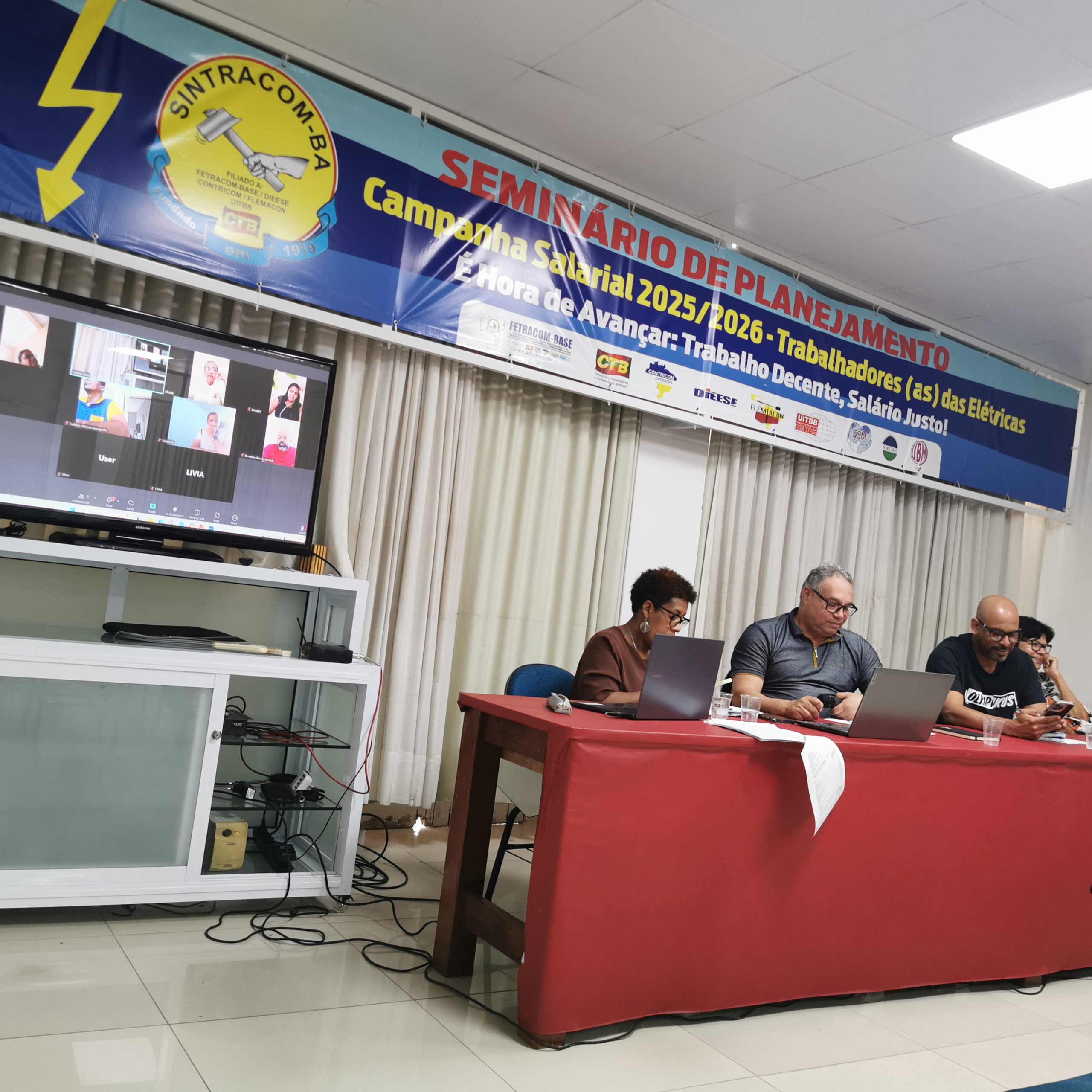 Na manhã deste sábado (19/07), o SINTRACOM-BA e a FETRACOM-BASE reuniram trabalhadores e trabalhadoras na sede do Sindicato, e realizaram o Seminário de Planejamento das Elétricas, para dar início à Campanha Salarial 2025 / 2027 da categoria. Foram apresentadas propostas e aprovada por unanimidade a pauta de reivindicações.