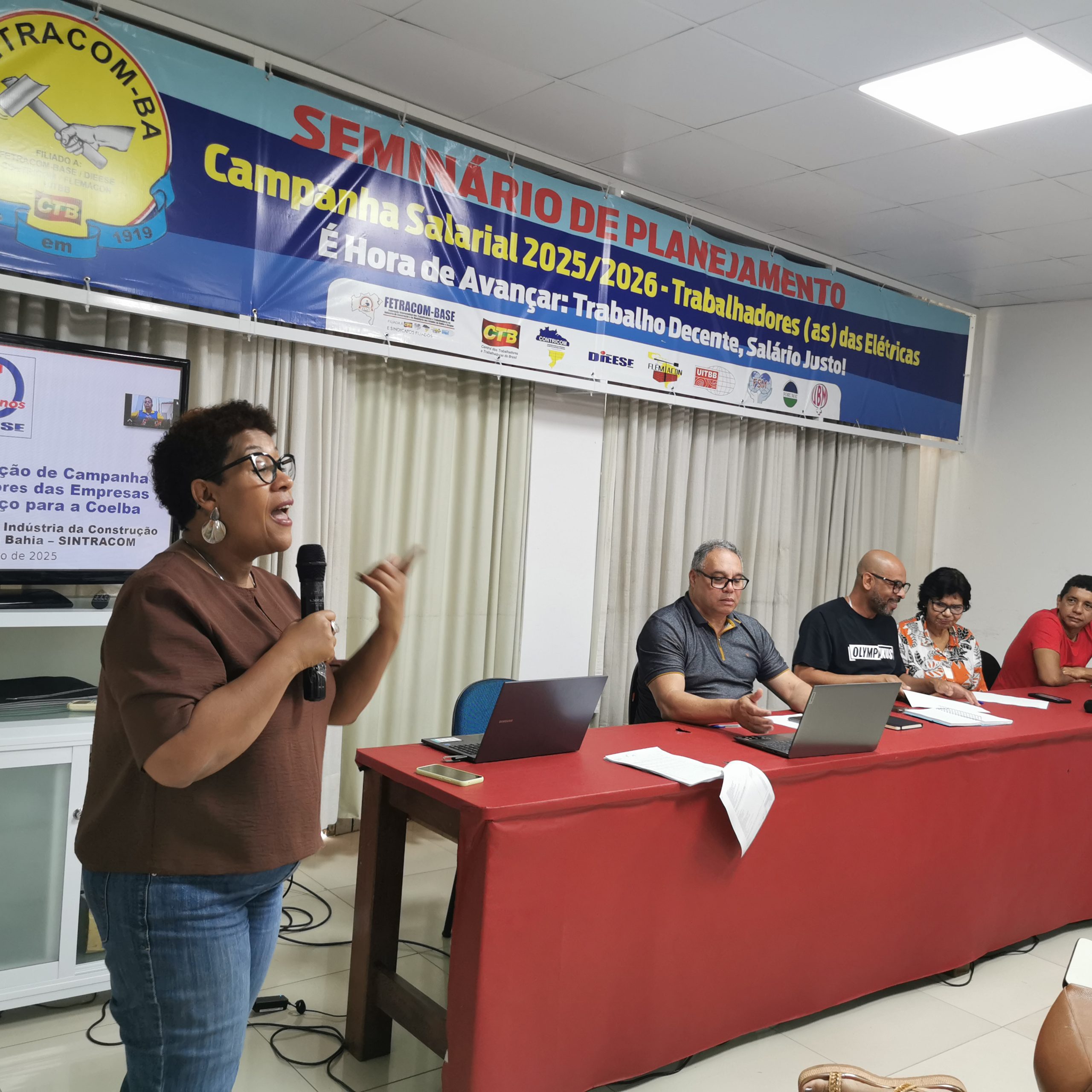 Lúcia Maia, diretora de Imprensa e Comunicação do SINTRACOM-BA e também presidenta da Federação Latino-americana (FLEMACON) destacou que “negociar salário é disputar o presente e o futuro. E a Convenção Coletiva de Trabalho é fruto da luta e resistência dos trabalhadores (as)”.