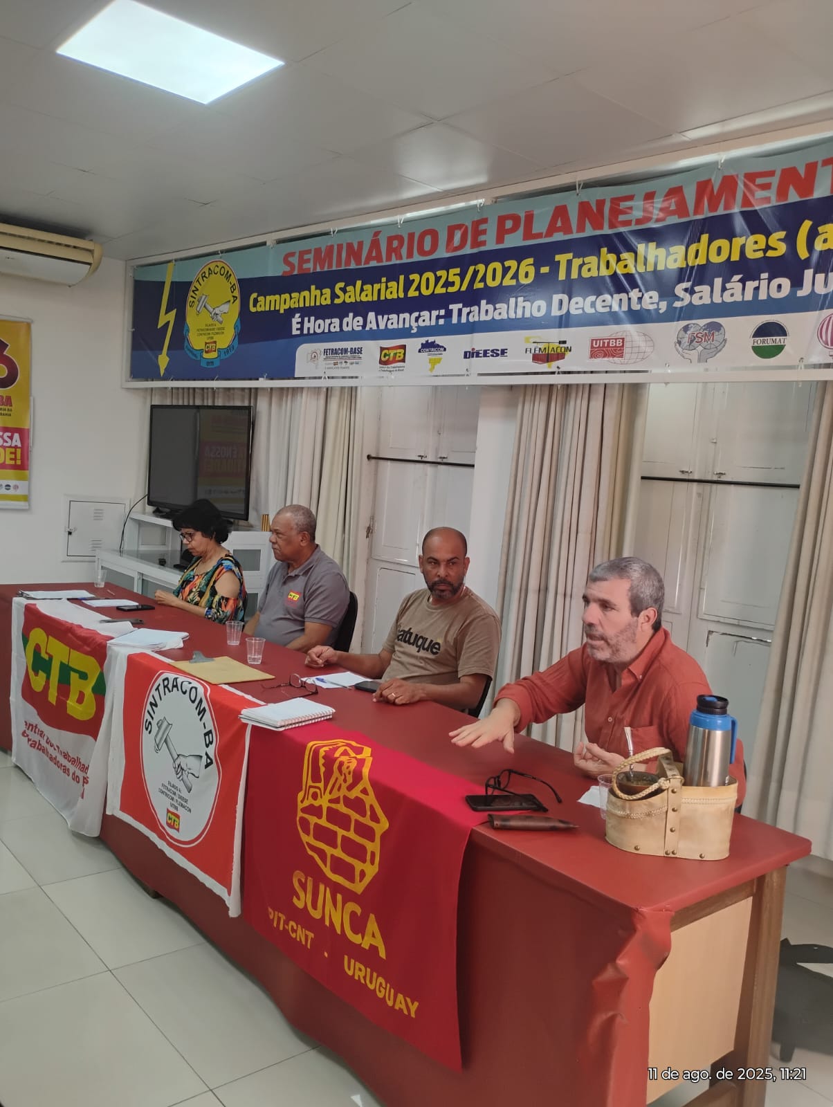 O objetivo foi trocar experiências do movimento sindical na América Latina e avaliar os resultados dos três eventos importantes que a CTB promoveu em Salvador de 5 a 9/08: 6º Congresso Nacional da CTB, que elegeu Carlos Silva pelo SINTRACOM-BA e Lúcia Maia pela FETRACOM-BASE, para a diretoria plena da CTB Nacional; 6º Congresso Estadual da CTB Bahia, que elegeu para a nova direção seis representantes do SINTRACOM-BA e FETRACOM-BASE e Sindicatos filiados; e o Seminário Internacional, que teve a participação dos dois sindicatos irmãos – SINTRACOM-BA e SUNCA, e dirigentes sindicais de cerca de 20 países.
