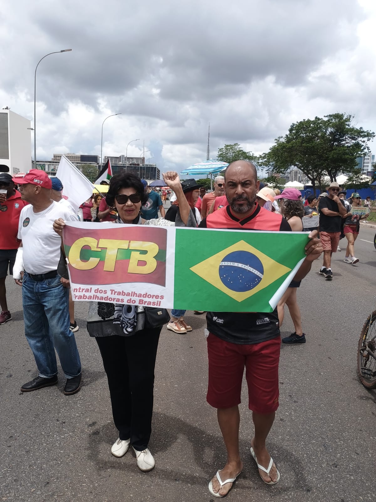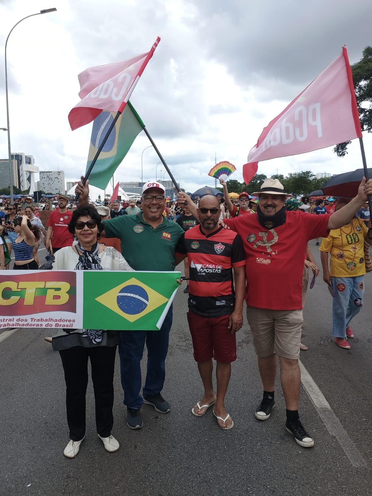 Em Brasília, o presidente do SINTRACOM-BA, Carlos Silva, e a diretora de Imprensa e também presidenta da FLEMACON, Lúcia Maia, marcharam juntos com a caravana da CTB, no percurso do Museu da República até o Congresso Nacional, e milhares de manifestantes, contra a aprovação do chamado PL da Dosimetria, o projeto de lei que pretende diminuir o cálculo das penas (dosimetria) de todos os condenados pelos atos golpistas de 8 de janeiro de 2023 e beneficiar o ex-presidente Jair Bolsonaro.