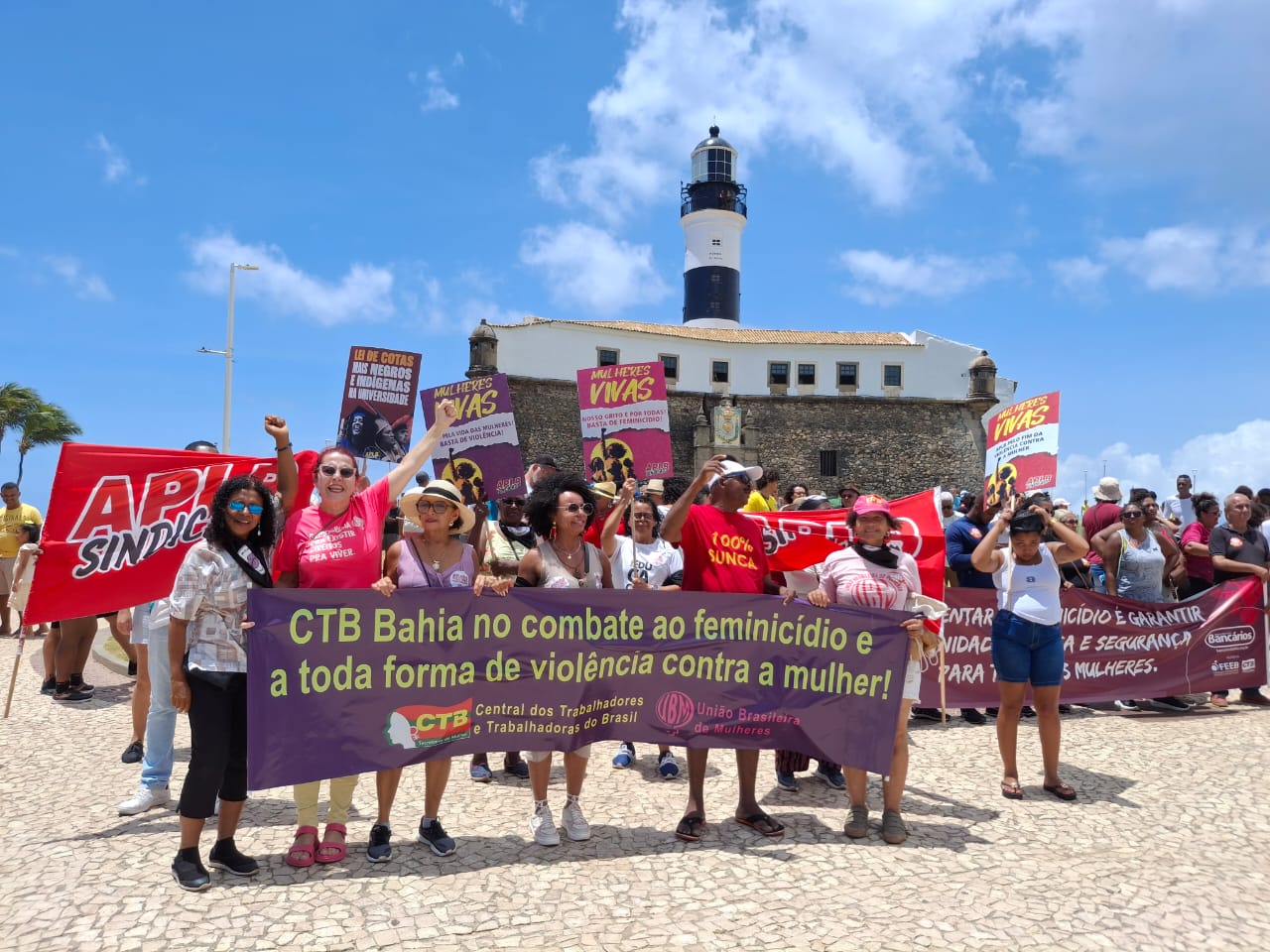 Dirigentes da FETRACOM-BASE e do SINTRACOM-BA estiveram presentes nos atos em Salvador, juntamente com o secretário geral do SINTRACOM-BA, Florisvaldo Bispo, e a secretária de Mulheres, Sônia Maria.