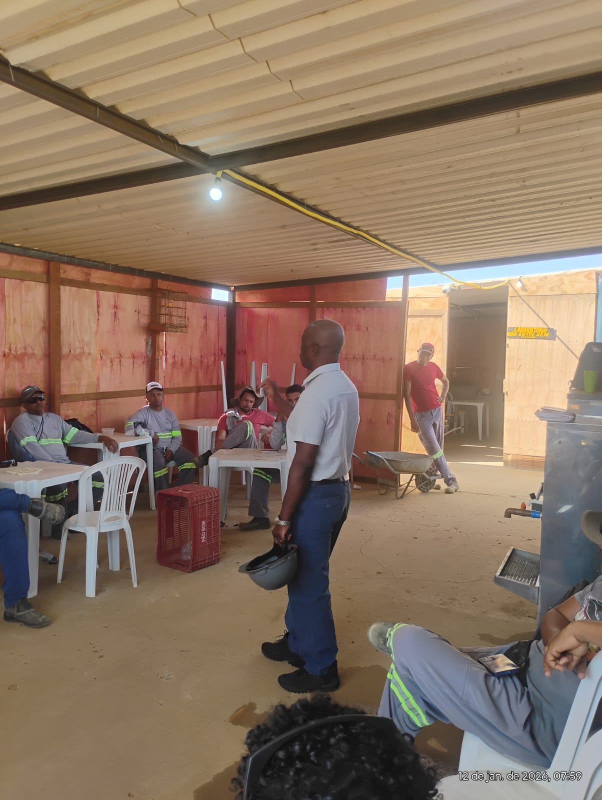 Nesta segunda-feira, a empresa não forneceu nem o café da manhã para os trabalhadores (as) que estão no canteiro aguardando uma solução.