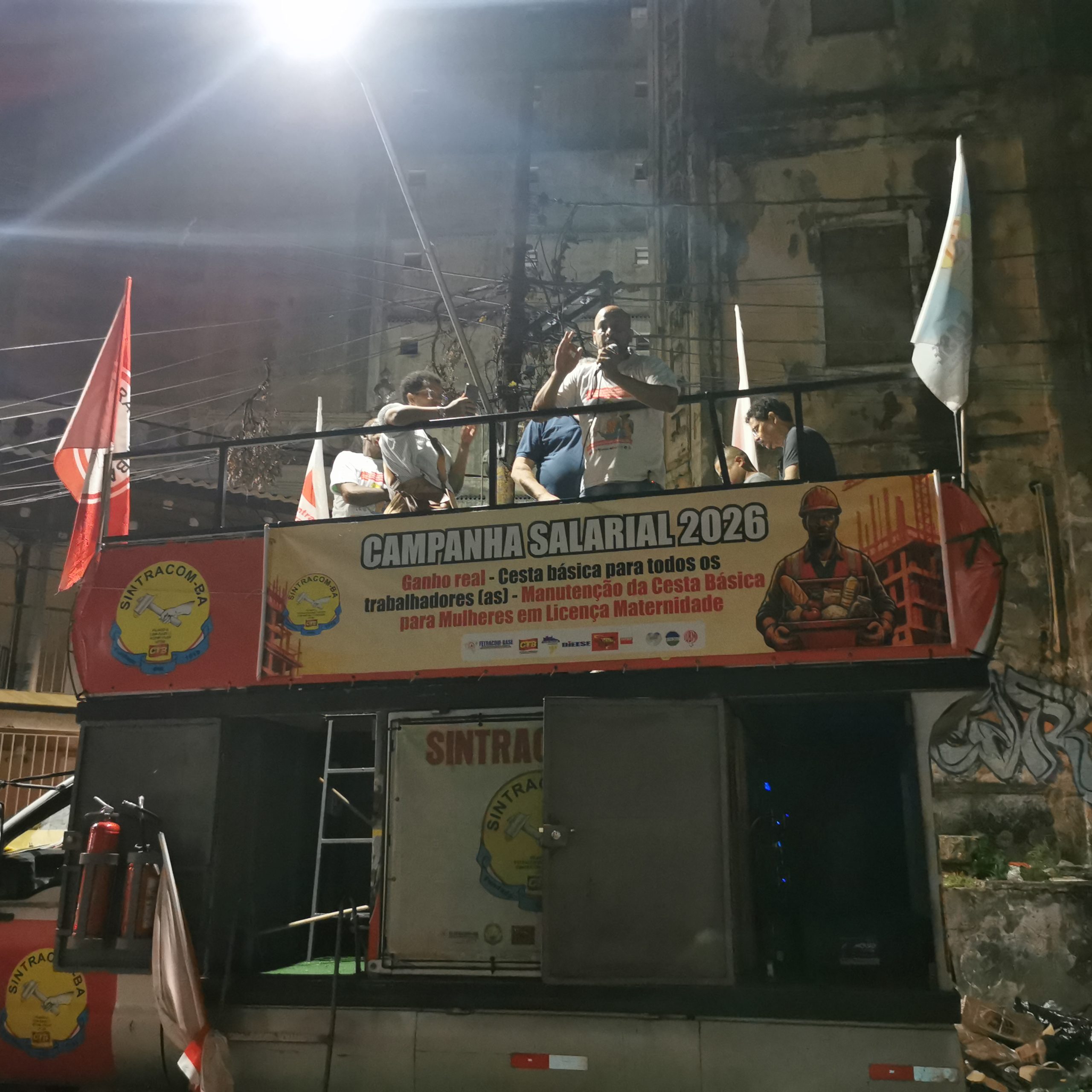 Cerca de 400 trabalhadores e trabalhadoras da construção participaram, no início da noite desta quinta-feira, 05/03, de assembleia geral da Campanha Salarial 2026, no Largo de São Bento, centro de Salvador. E aprovaram por ampla maioria reajuste salarial com reposição da inflação e ganho real.