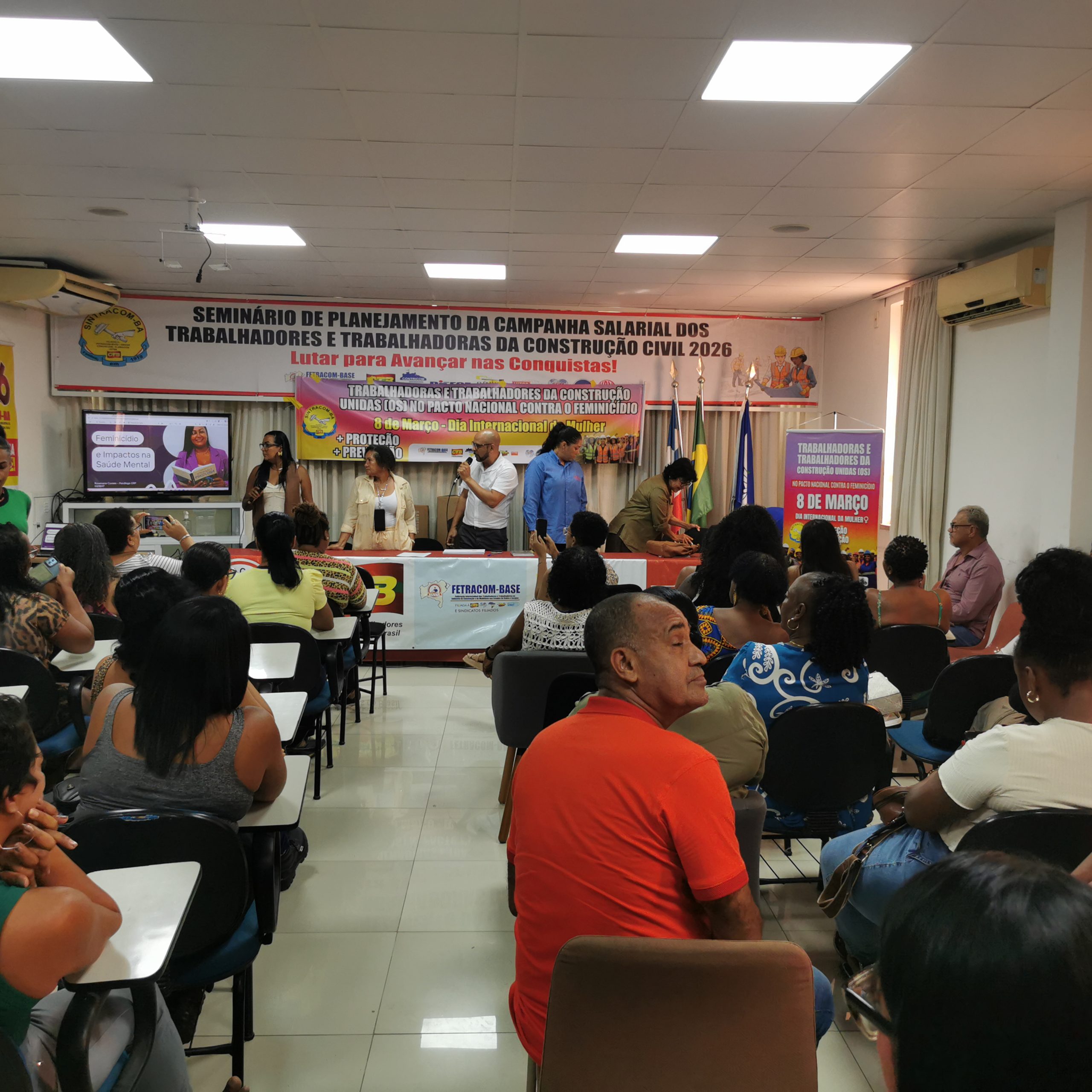 O Café da Manhã com Palestra deu continuidade à celebração do 8 de Março, Dia Internacional da Mulher, quando dirigentes do SINTRACOM-BA, FETRACOM-BASE, CTB e FLEMACON participaram da caminhada do Cristo ao Farol da Barra, no ato “Mulheres vivas, em luta e sem medo: Por Democracia com soberania, pelo Bem Viver, fim do feminicídio e da escala 6×1”, que teve a presença de entidades feministas, sindicatos, movimentos sociais e ativistas feministas.