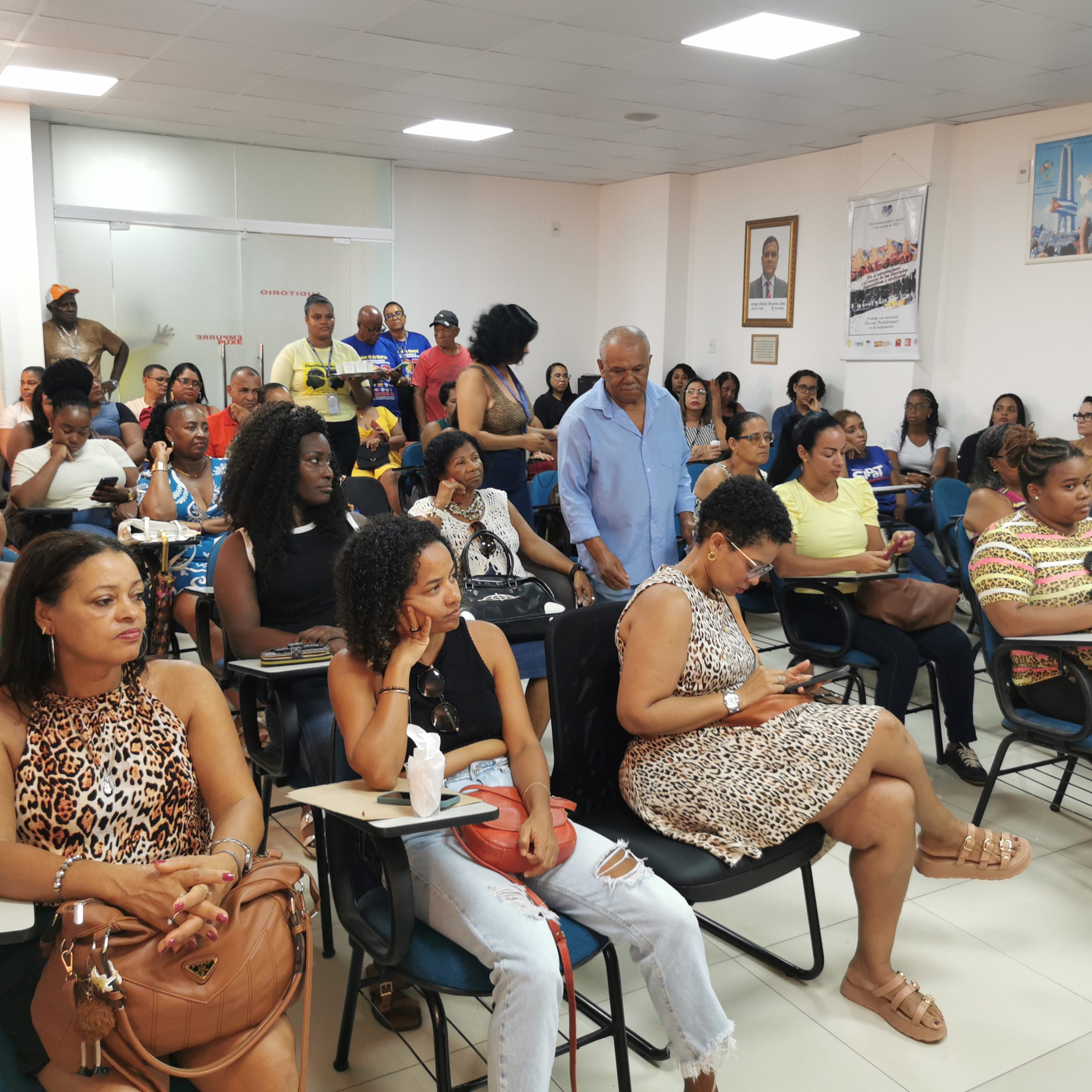 Teve a participação de trabalhadoras (es), diretoras (es) e convidadas (os), que falaram sobre violência contra a mulher, Feminicídio, assédio moral e a luta contra a escala exaustiva de trabalho 6X1.