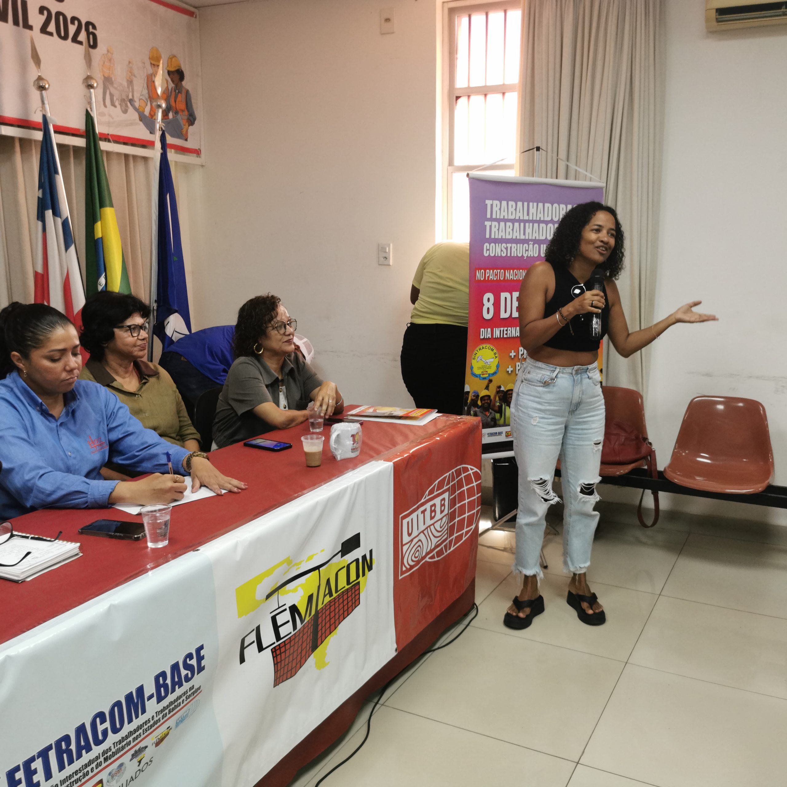 As diretoras Maria Nery e Daniela Cerqueira também falaram sobre a importância de realizar um evento desse porte, sobre a violência contra as mulheres para as trabalhadoras da construção. Vale registrar o esforço conjunto dessas companheiras e dos demais diretores e diretoras do SINTRACOM-BA para o sucesso do evento.