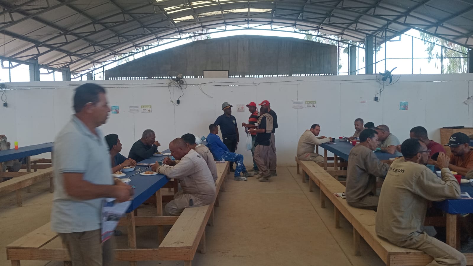 E foram até o refeitório, onde constataram que o café da manhã servido aos trabalhadores (as) é reforçado, de qualidade, composto por marmita de cuscuz com mocotó, ensopado e outros itens.